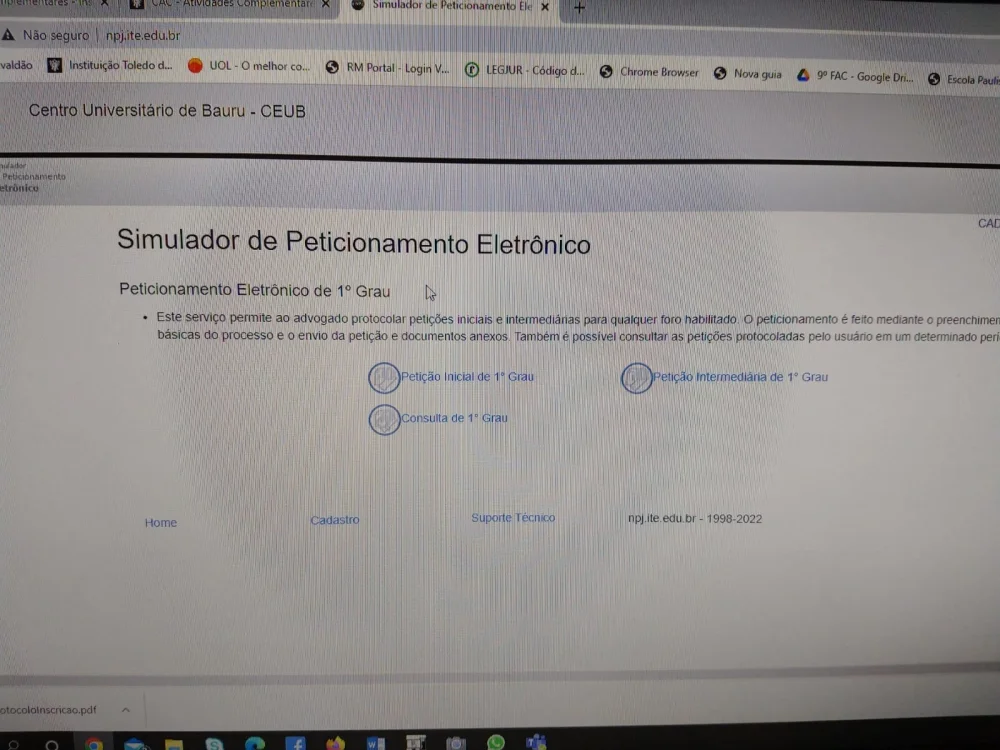 Nos dias 31 de março e 4 de abril, os alunos dos quintos anos do curso de Direito da ITE Bauru realizaram uma atividade prática de peticionamento eletrônico. O responsável pela ação foi o professor e coordenador do Núcleo de Prática Jurídica, professor mestre Márcio Gavaldão.