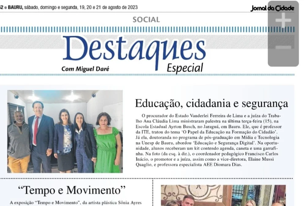 O iteano falou sobre o papel da educação na formação do cidadão. Já a juíza Ana Cláudia, que é doutoranda do programa de pós-graduação em Mídia e Tecnologia na Unesp de Bauru, ministrou sobre a educação e a segurança digital.