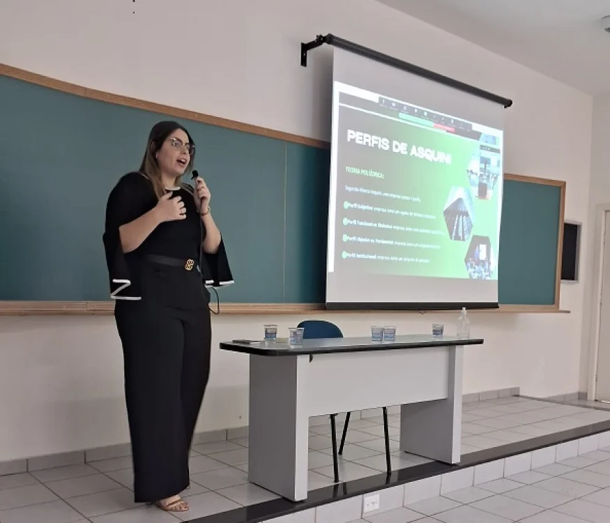 A palestrante abordou os tipos societários, enquadramento societário, atos constitutivos das empresas e registros empresariais.