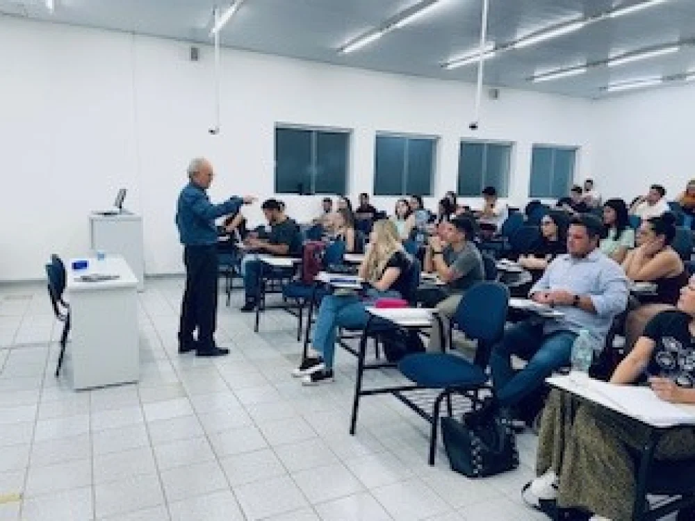 Nos dias 25 e 26 de setembro, os alunos dos cursos de Administração, Ciências Contábeis, Engenharia de Produção receberam o professor José Dutra Vieira Sobrinho, autor do livro básico didático da disciplina "Matemática Financeira e Alternativas de Investimentos", do professor Roberval Modesto da Cunha, responsável pela ação.