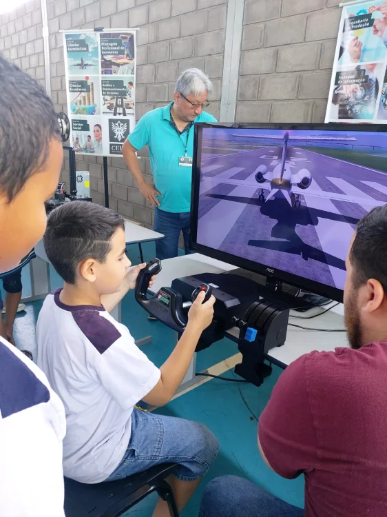 A ITE participou com uma equipe de professores e alunos/monitores e levou simuladores de voo e diversas peças que foram desenvolvidas/produzidas pela Impressora 3D do Laboratório de Inovação da instituição.