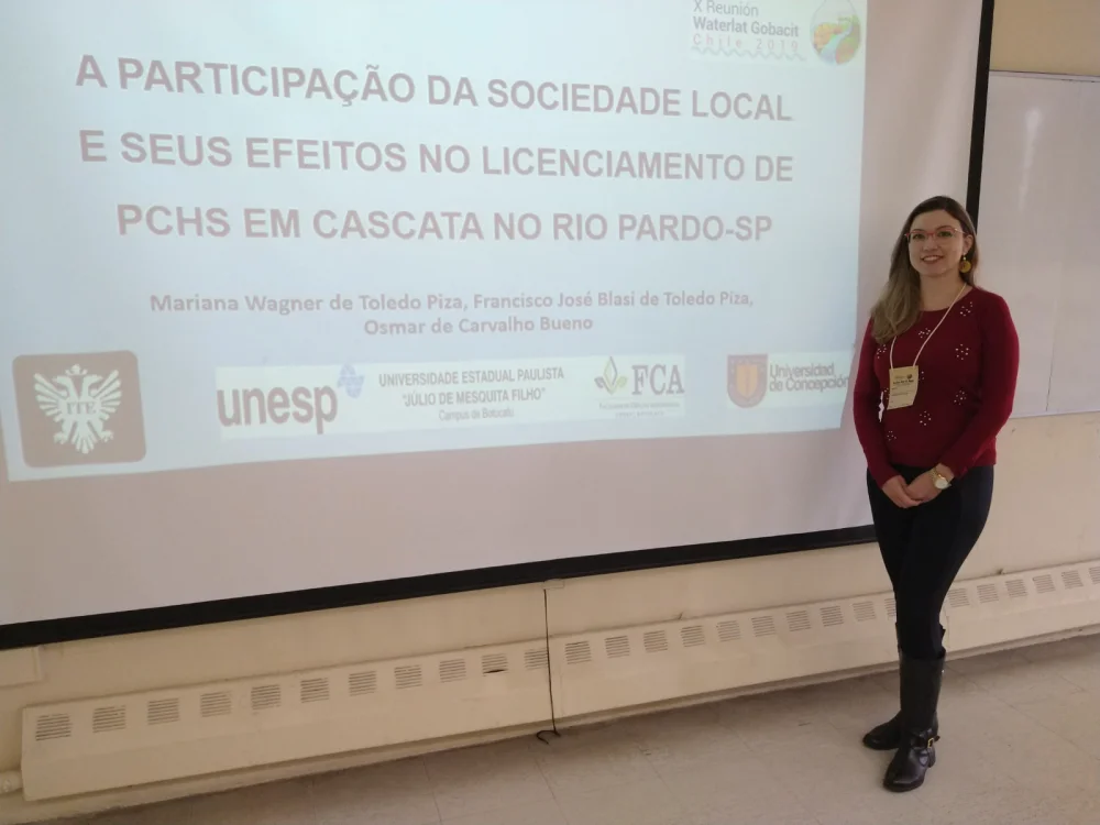 "Em 2019, com o apoio da ITE, participei da X Reunión Internacional de la Red Waterlat-Gobacit em Concepción, no Chile, de 7 a 11 de outubro de 2019. Na ocasião, eu representei a faculdade e apresentei o trabalho. Deste encontro foi elaborado o livro", comenta a professora.