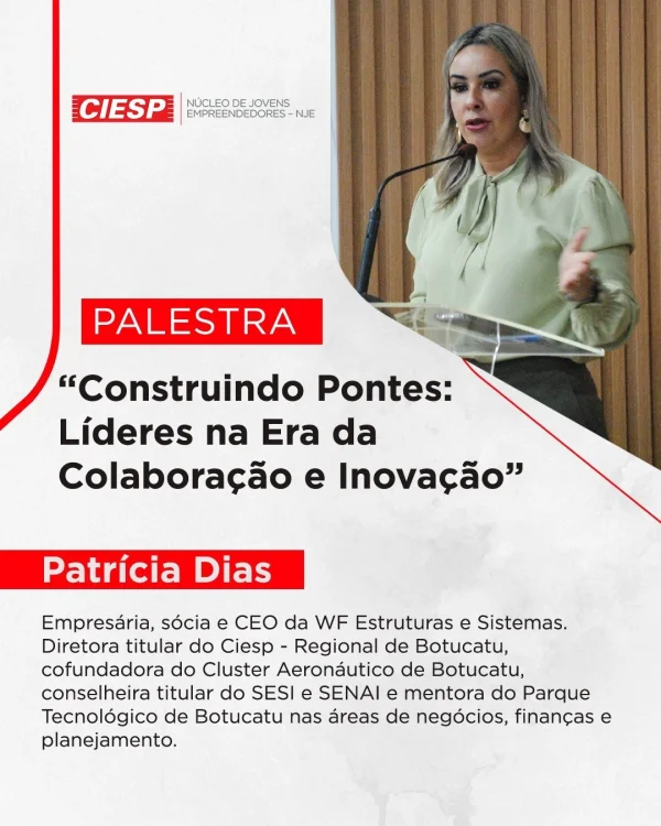 A atividade contará com um ciclo de palestras com Patrícia Dias, diretora titular do Ciesp Botucatu; Júnior Chinamel, coordenador do Núcleo de Jovens Empreendedores (NJE) e Paulo Sérgio Cadorin, diretor financeiro e administrativo da Irizar do Brasil.