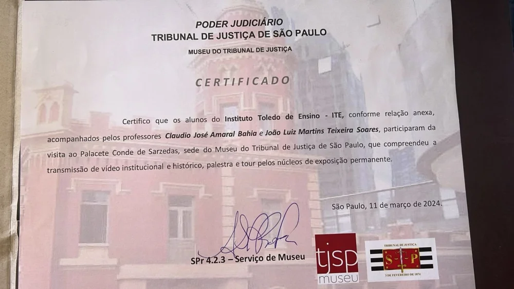 "O objetivo foi promover a interação de alunos de vários semestres e anos da faculdade por meio do conhecimento, além de incentivá-los sobre a importância da leitura, bem como conhecer e entender a história da Justiça paulista e o funcionamento dos julgamentos dos recursos apresentados ao TJSP", narra o professor Bahia.