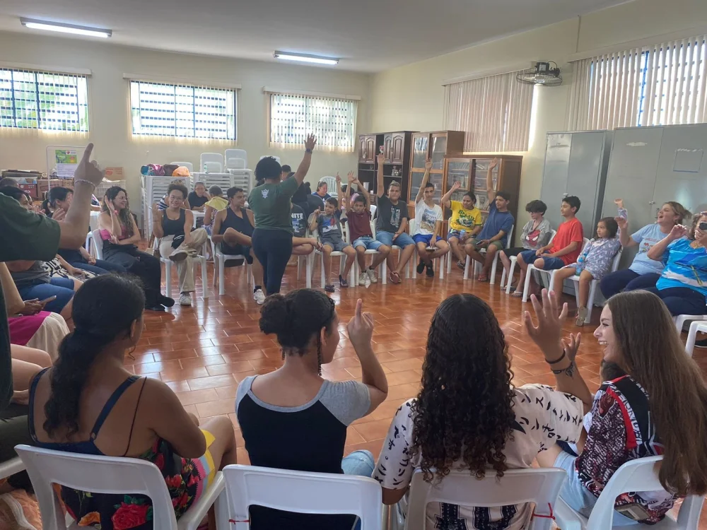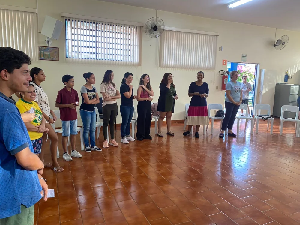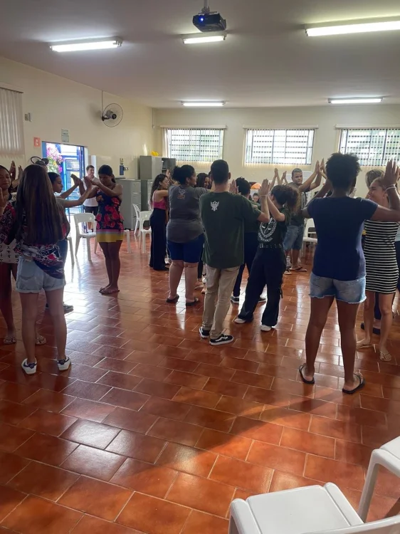 Tornando crianças e adolescentes felizes. Esta foi a temática da atividade de extensão realizada por estudantes do primeiro e último anos do curso de Serviço Social com crianças e adolescentes da Instituição Núcleo Amizade (bairro Santa Edwirges), no dia 20 de abril.