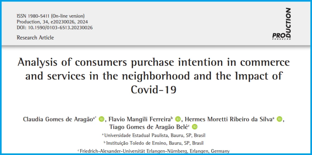 O professor mestre Flávio Mangili Ferreira publicou o artigo "Analysis of consumers purchase intention in commerce and services in the neighborhood and the Impact of Covid-19", na Revista Production, publicação da Associação Brasileira de Engenharia de Produção (Abepro).