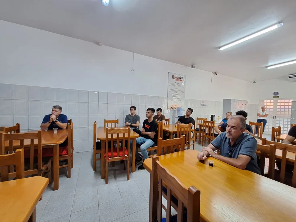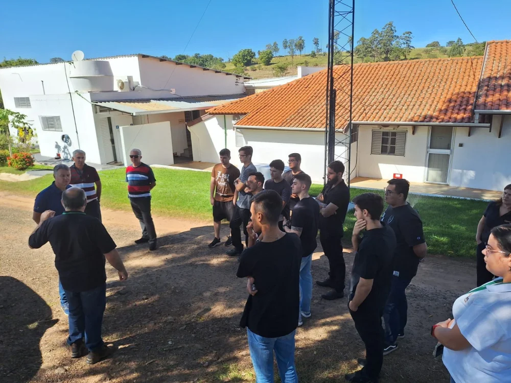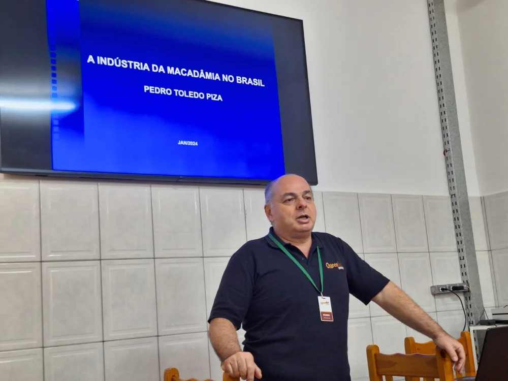 O Diretor Pedro Toledo Piza recepcionou e conduziu a visita apoiado por vários colaboradores, explicando as particularidades da empresa, que possui desde a formação de mudas, processamento das nozes e produtos direcionados ao consumidor final.