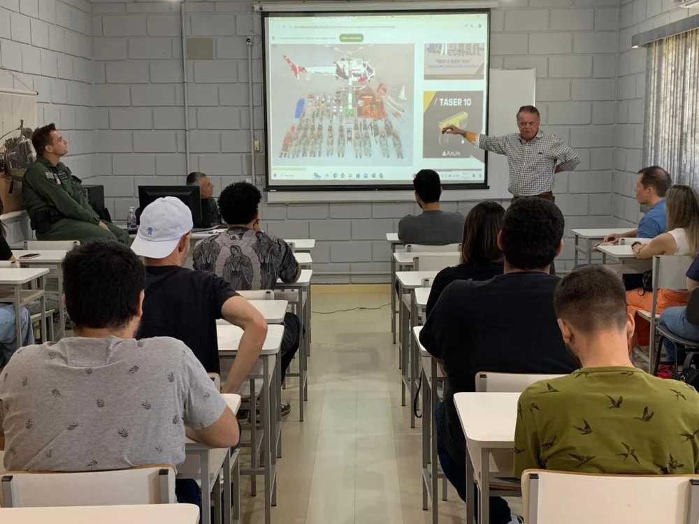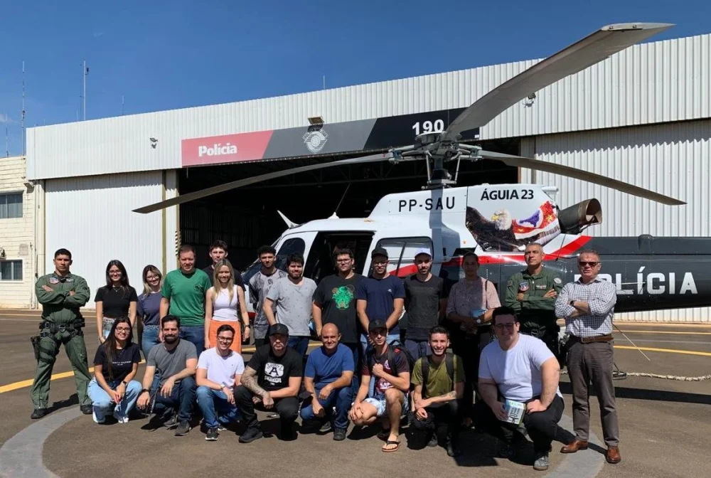 Os professores mestres Silvio Frank e Edson Mitsuya organizaram uma visita técnica que levou ao Comando de Aviação da Polícia Militar (CAvPM), no dia 11 de maio.