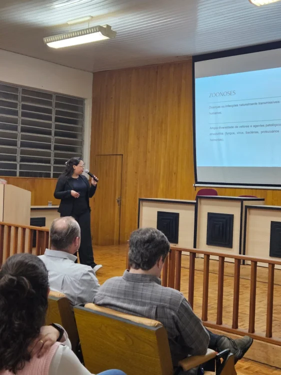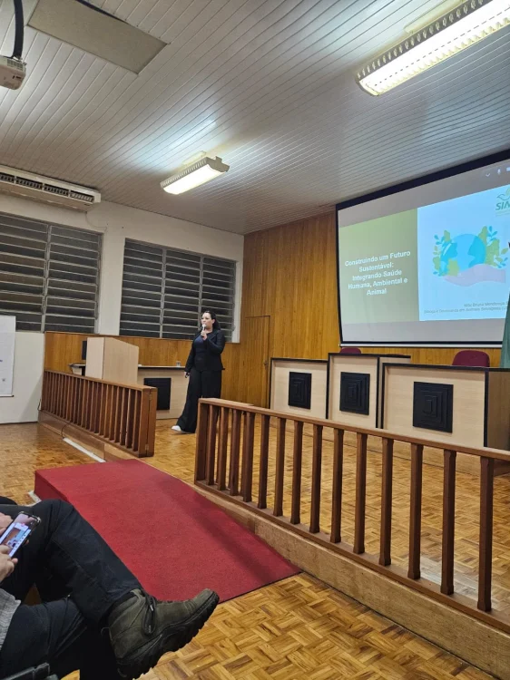 A palestra explorou o conceito de Saúde Única, uma abordagem holística que reconhece a interconexão entre a saúde humana, ambiental e animal.