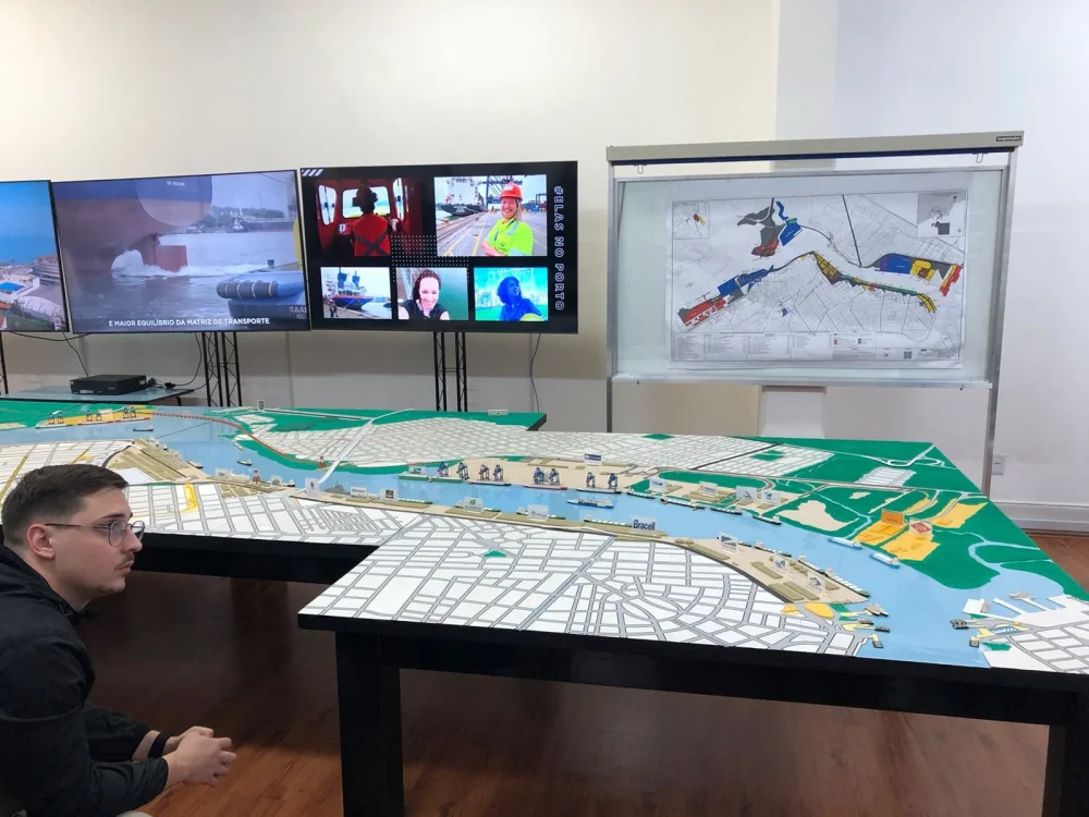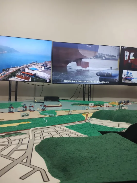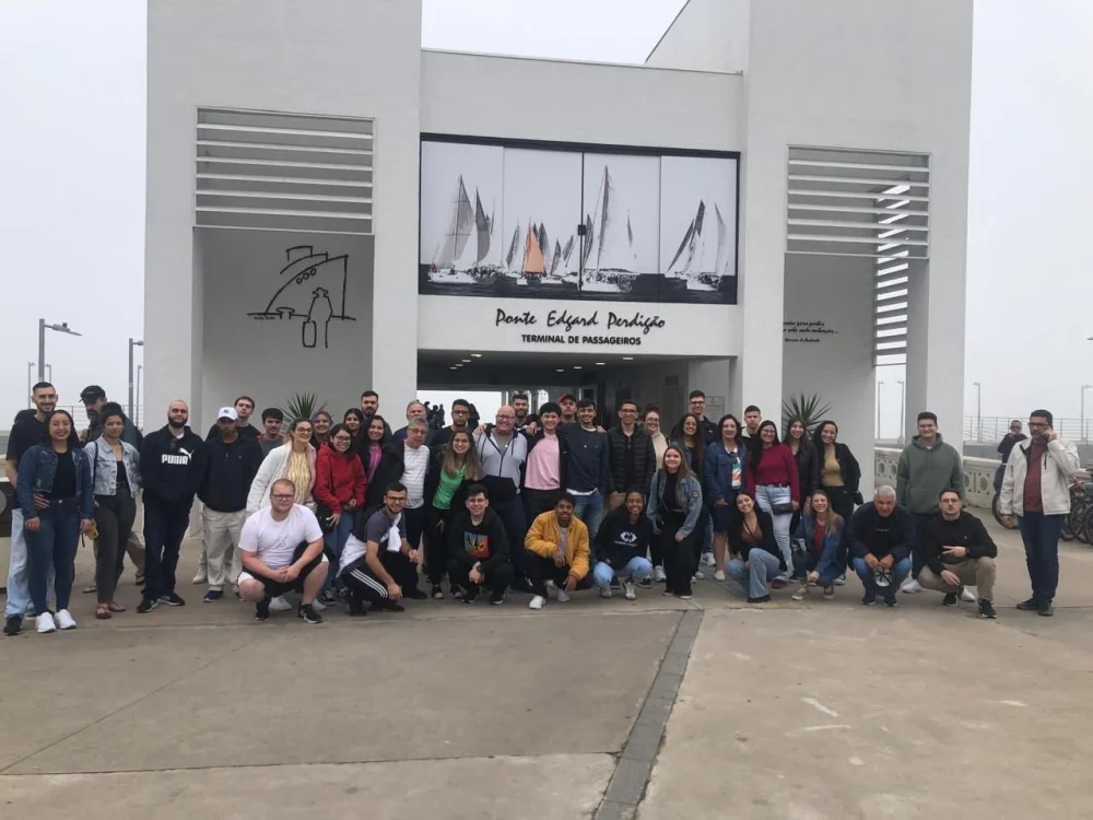 O Porto de Santos é responsável por 30% do volume de exportações brasileiras. Os estudantes aproveitaram a viagem para participar da Feira Escolar Office no Expo Center Norte, em São Paulo.
