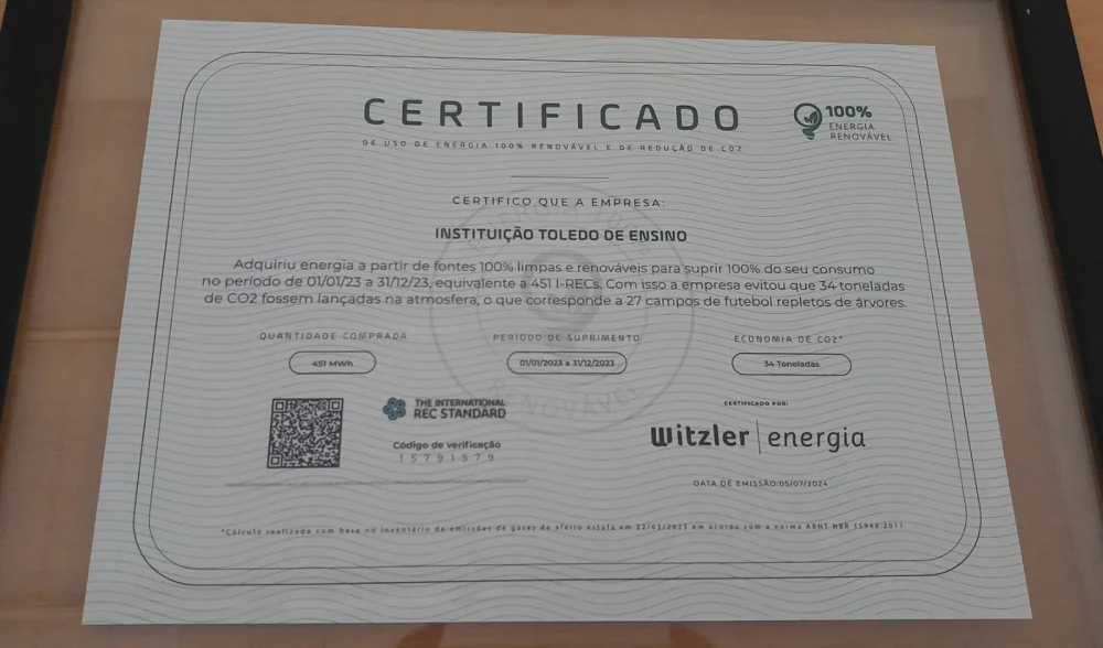 Toledo acredita, ainda, que a educação deve ser um catalisador para mudanças positivas. "E este certificado é prova de que estamos no caminho certo, construindo um futuro mais sustentável para todos", finaliza.