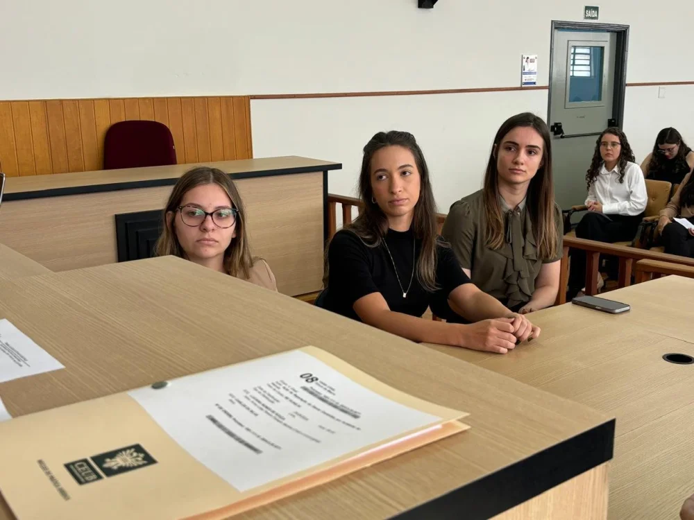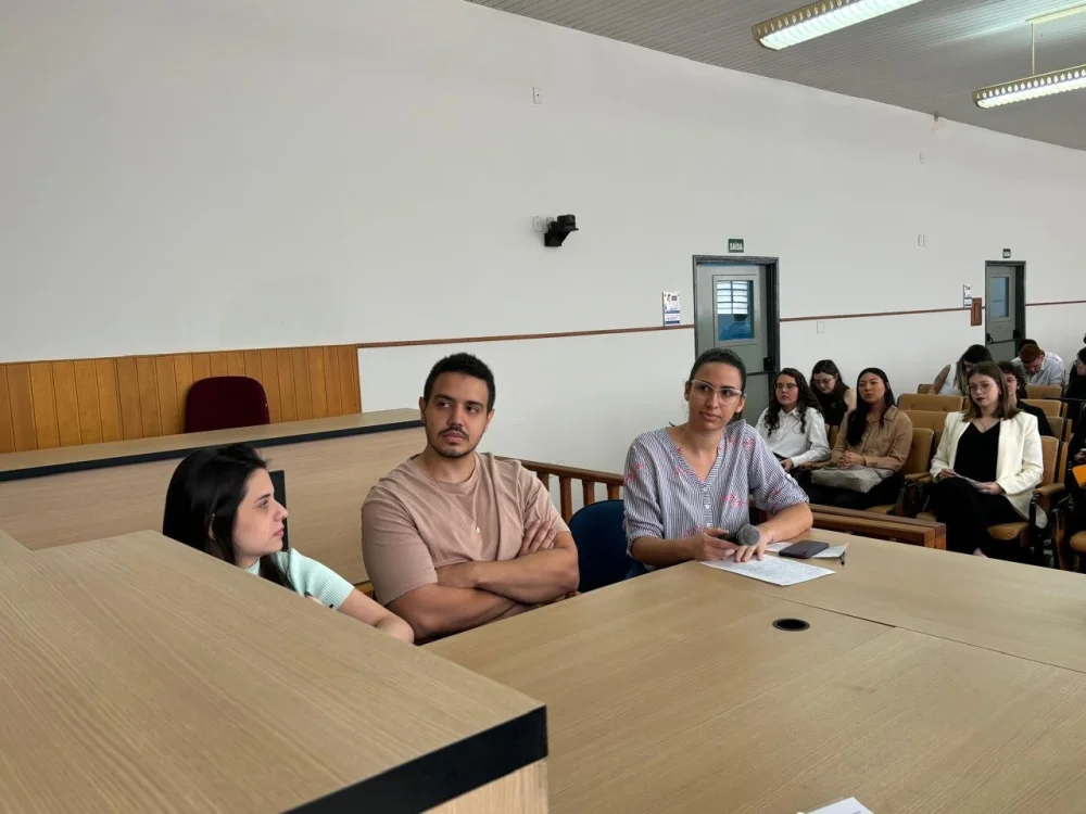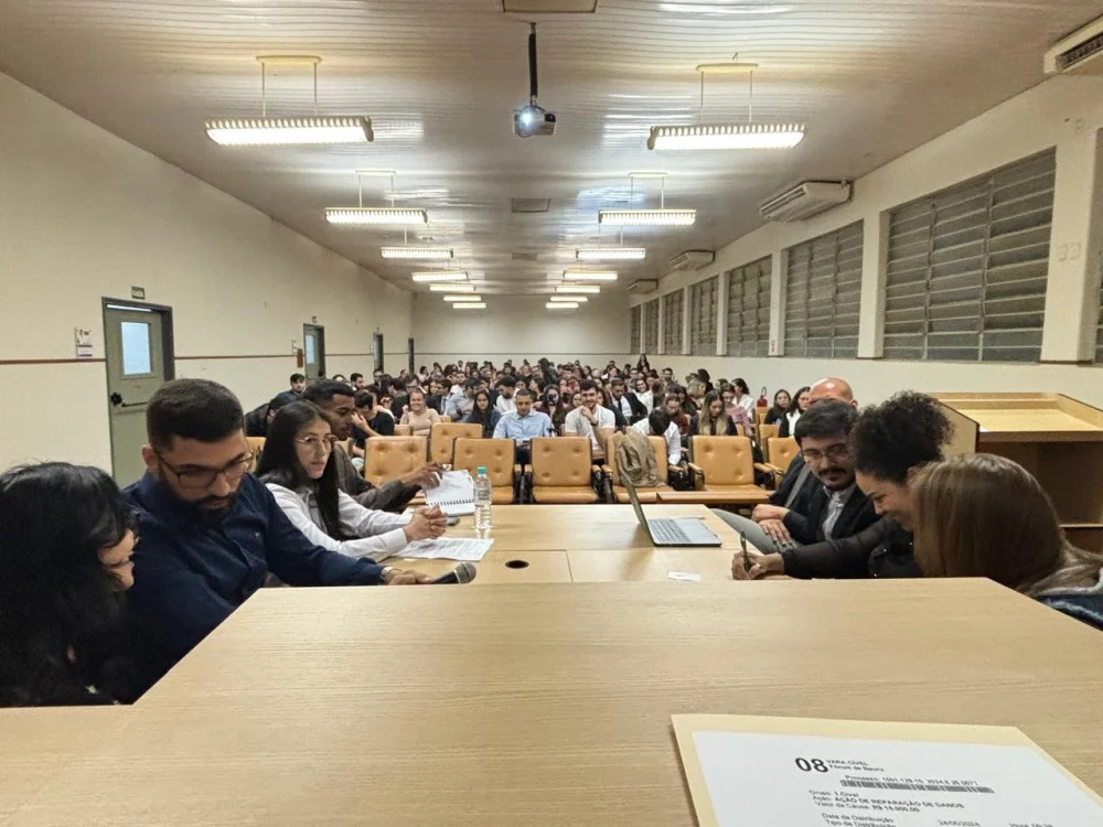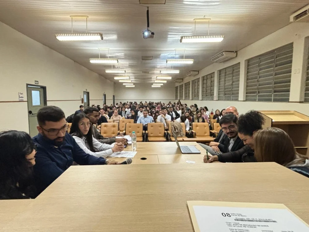 Os acadêmicos foram divididos em grupos, que atuaram elaborando as petições iniciais, fixaram os pontos a serem debatidos em audiência, distribuíram funções como juízes, serventuários, partes, advogados e testemunhas.