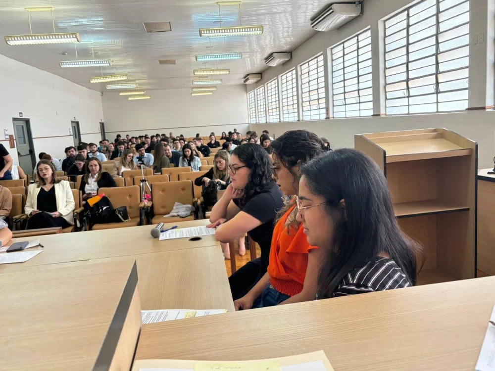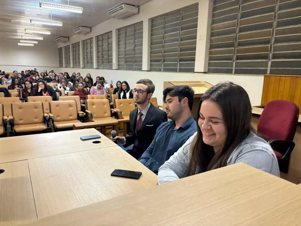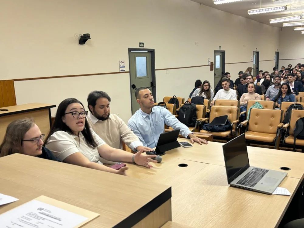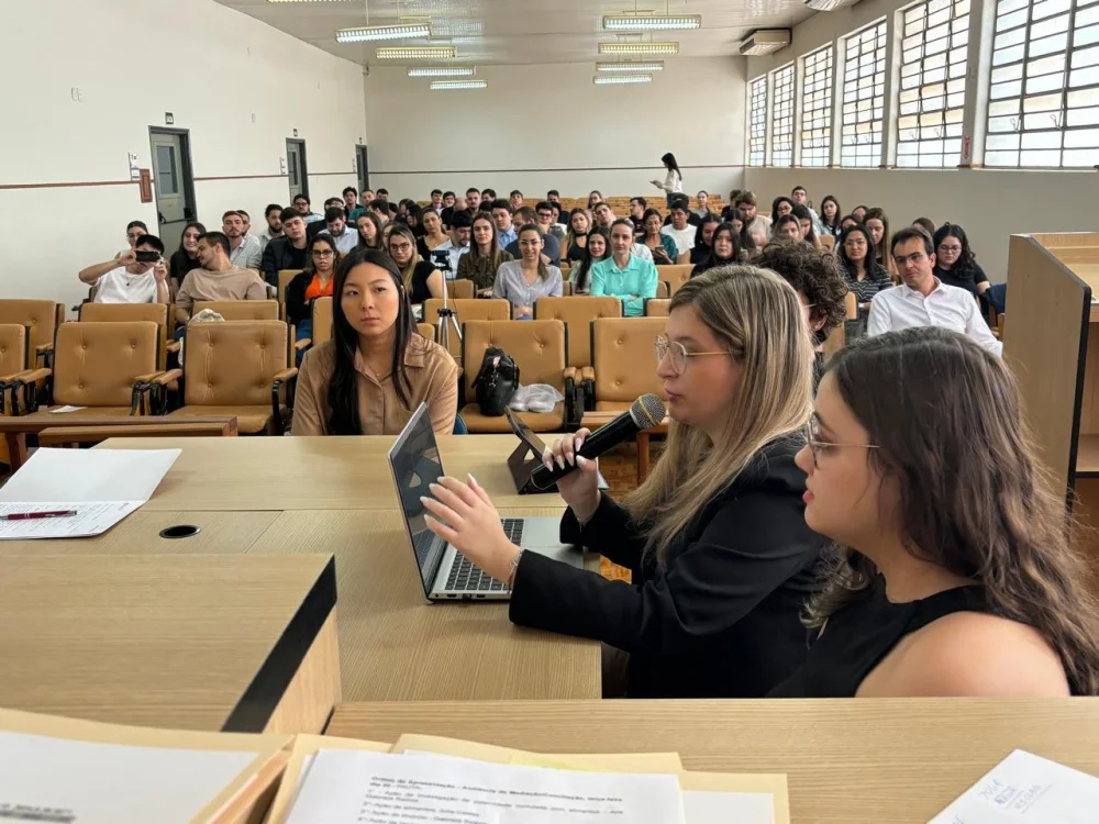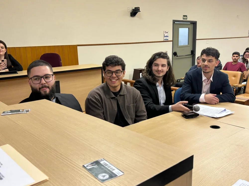 Os acadêmicos foram divididos em grupos, que atuaram elaborando as petições iniciais, fixaram os pontos a serem debatidos em audiência, distribuíram funções como juízes, serventuários, partes, advogados e testemunhas.
