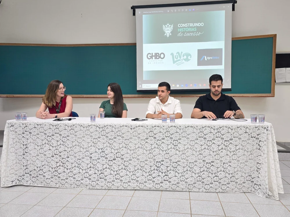 O evento ainda contou com a participação de três egressos do curso de Administração: Daniela Rocha, empreendedora da Luv petiscos; Felipe Mira, colaborador da Agroefetiva e Gabriel Henrique, corretor de imóveis.