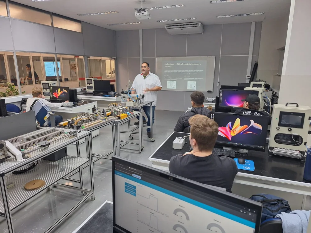 Desta vez, os iteanos tiveram aulas práticas de Controle de Processos Industriais nos laboratórios do Senai Bauru, sob a orientação da professora Carmen.