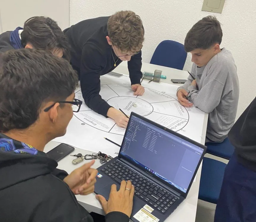 A partir da vivência, os alunos exercitaram o trabalho em equipe, processo criativo, brainstorming e a inteligência coletiva para criar negócios.