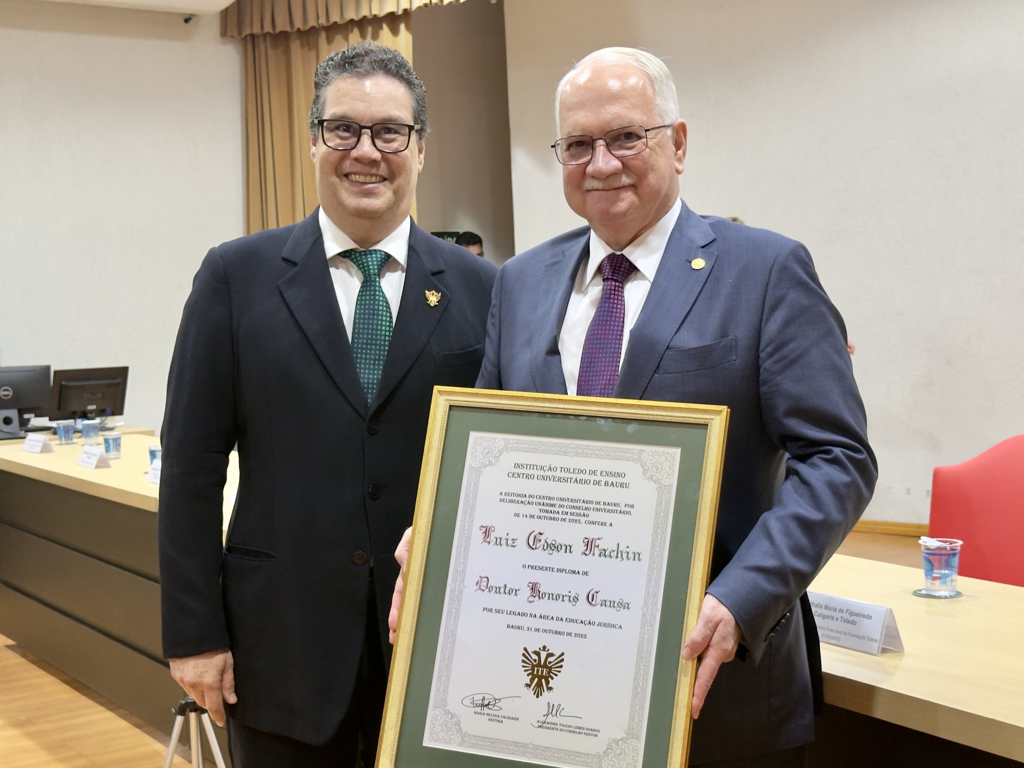 > "A outorga deste título expressa o reconhecimento da Instituição Toledo de Ensino à trajetória exemplar do Professor Luiz Edson Fachin -- mestre que une o saber jurídico à ética, o conhecimento à sensibilidade e o Direito à defesa incondicional da dignidade humana", afirmou o pró-reitor *Tayon Berlanga*.