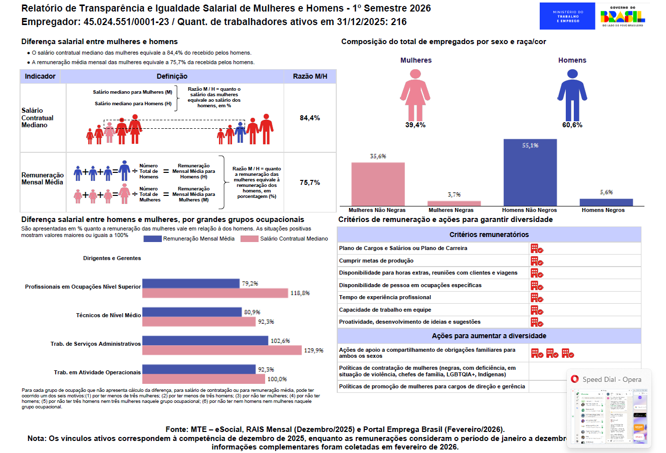 Avenida Alcides Cagliari, 2601 - Jardim AeroportoO Relatório de Transparência e Igualdade Salarial de Mulheres e Homens é um documento elaborado pelo Ministério do Trabalho e Emprego (MTE). O relatório compara salários, remunerações e a proporção de ocupação de cargos entre homens e mulheres.