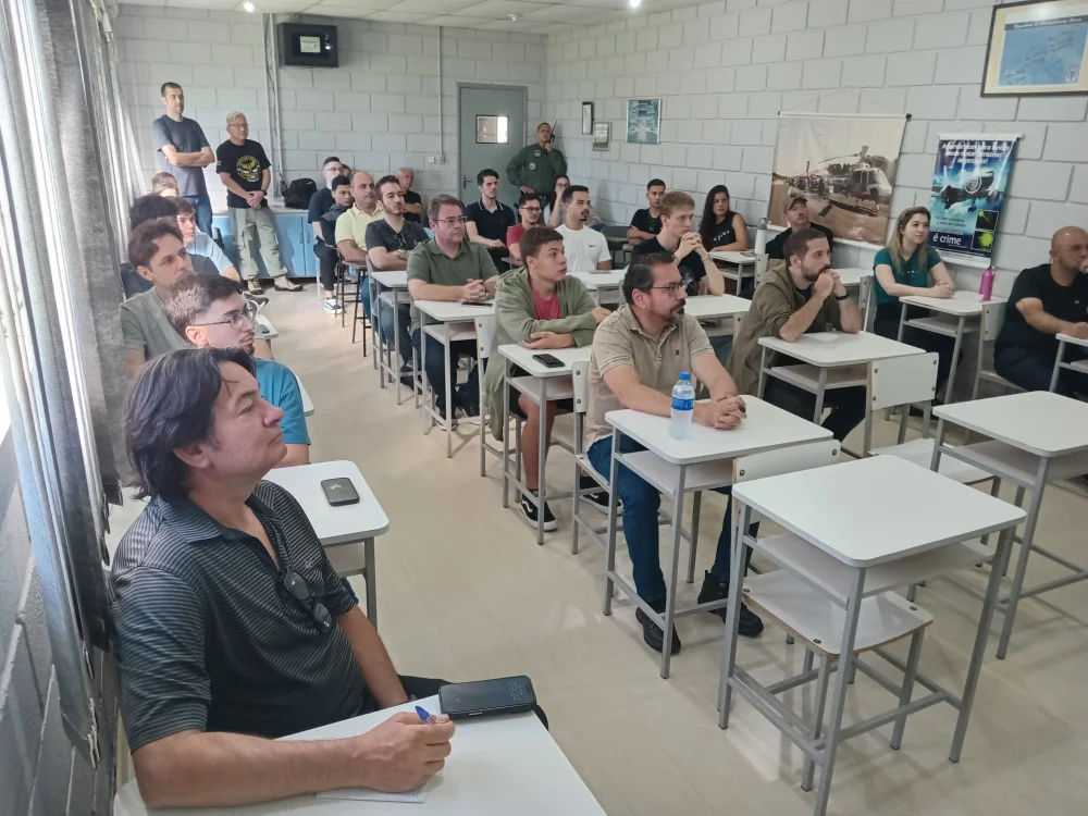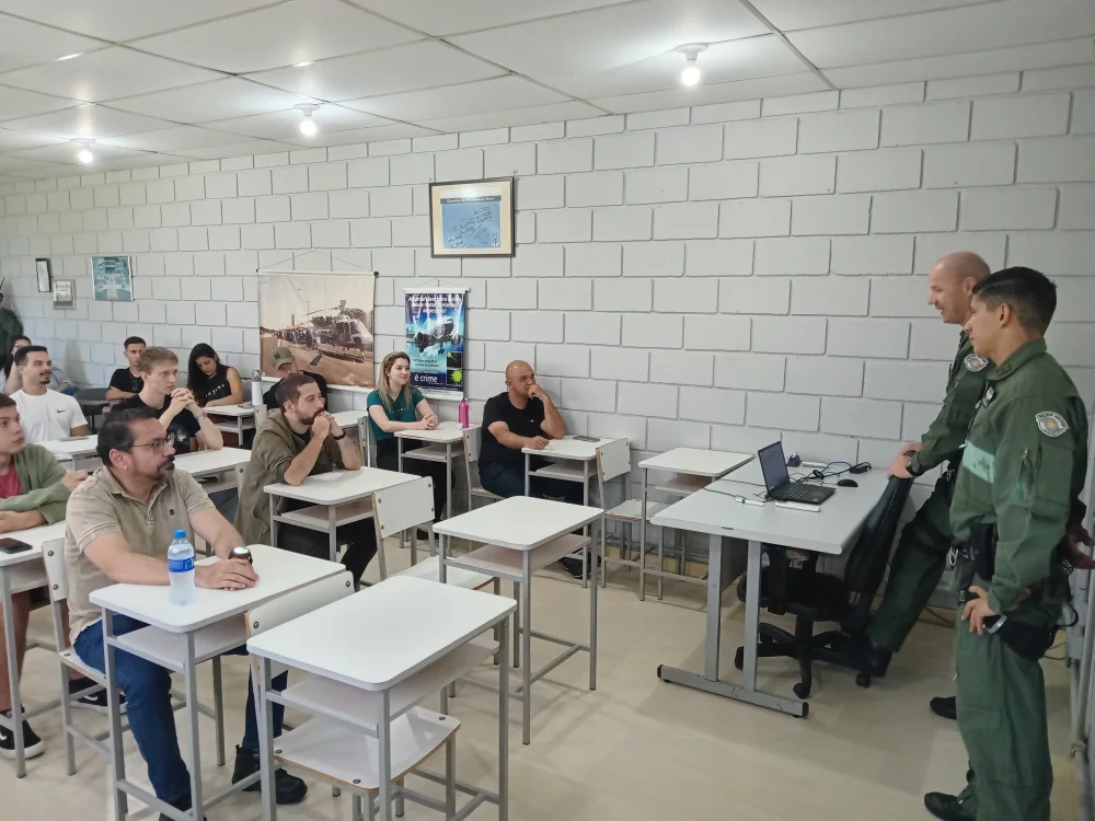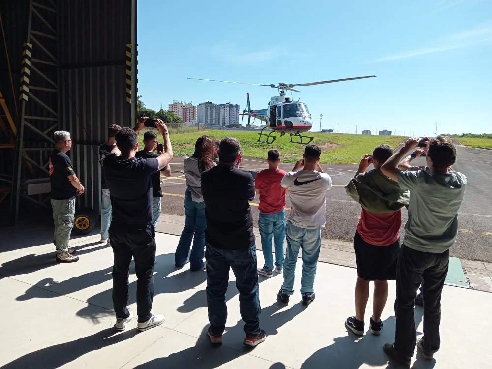 O professor Sílvio Luiz Frank foi o responsável pela ação, que representou uma oportunidade única de imersão no ambiente operacional da aviação de segurança pública, com contato direto com aeronaves, pilotos e estrutura de missão real.
