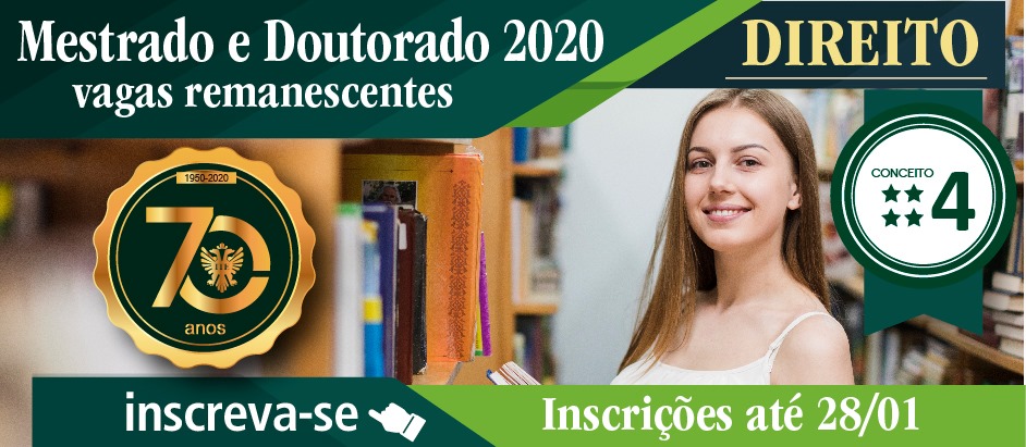 Estão abertas as inscrições (vagas remanescentes) do processo seletivo 2020 para os cursos de mestrado e doutorado do programa de pós-graduação Stricto Sensu em Direito da ITE Bauru, área de concentração: Sistema Constitucional de Garantia de Direitos.